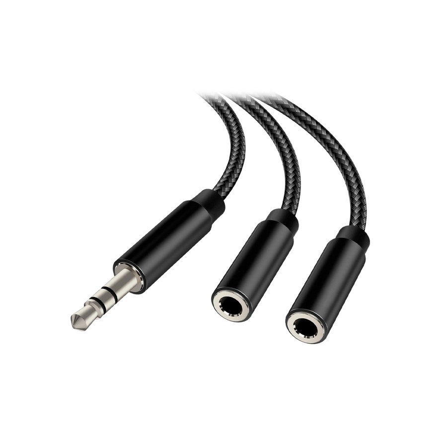 El adaptador de audio 3.5mm convierte un solo puerto en dos salidas: una para auriculares y otra para micrófono. Ideal para usar headsets en notebooks, PCs o consolas que cuentan con un único conector